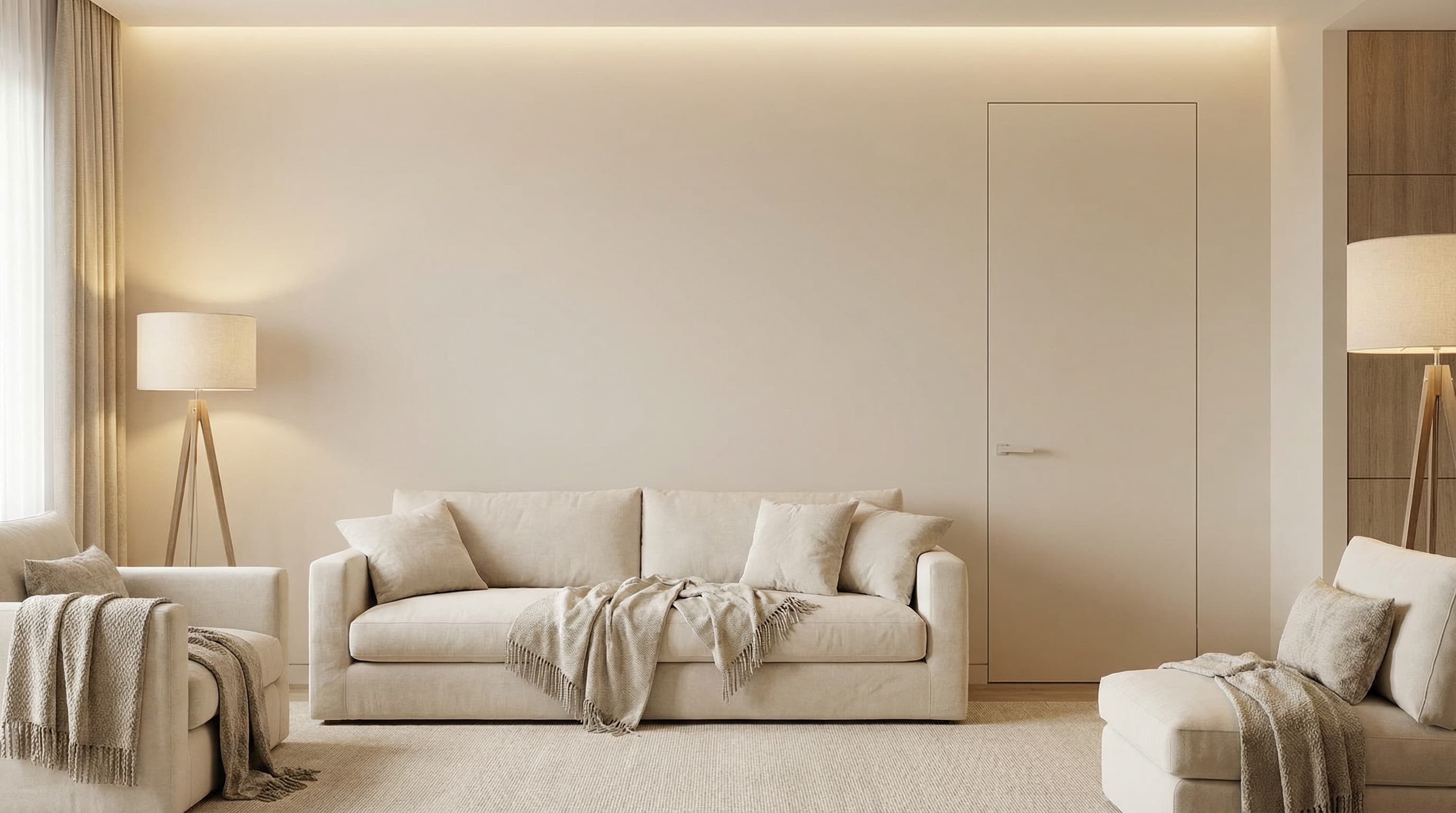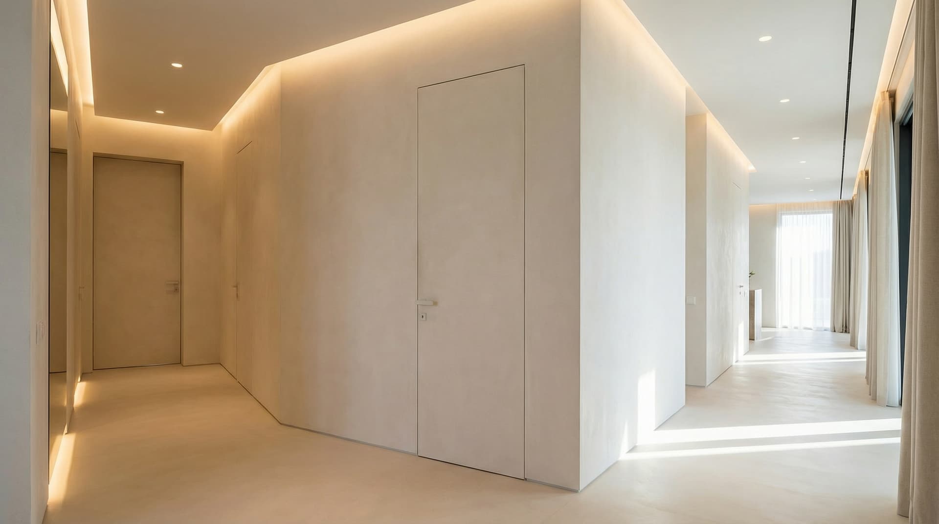 Двери скрытого монтажа позволяют создать цельное пространство без выступающих наличников и визуального шума. Полотно и отделка подбираются так, чтобы дверь становилась частью стены и поддерживала общую концепцию интерьера.