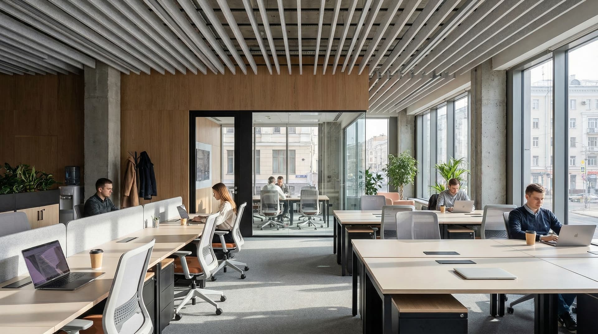 Мы подбираем материалы, фурнитуру и конструктивные решения под задачи конкретного офиса: рабочие станции, зоны ожидания, переговорные, ресепшн и места для хранения. Всё это формирует гармоничное пространство без хаоса и перегруженности.